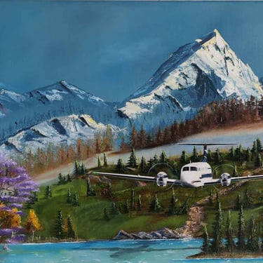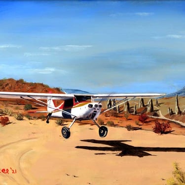 This is my friend's "Arctic Tern." It's a famous Cessna 140 that was once owned by by Harmon "Bud" Helmericks back in the early 1950's in Alaska. Helmericks is the writer of some great books about his adventures flying in Alaska in the 50's and 60's, most notably "Last of the Bush Pilots," and '"Flight of the Arctic Tern," where he mentions this airplane. The Cessna 140, "Arctic Tern," is a real piece of Alaska flying history. 18x24 oil on canvas. SOLD